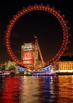 The London Eye turned red last night along with major landmarks around Britain as campaigners launched a major drive against heart disease.